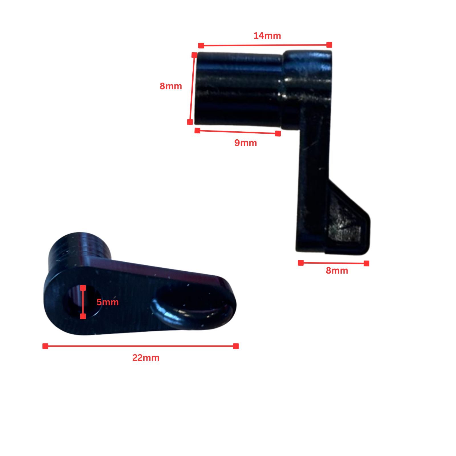 Dimensions: 22 mm length, 14 mm barrel depth, 8 mm barrel diameter, 11 mm offset height.