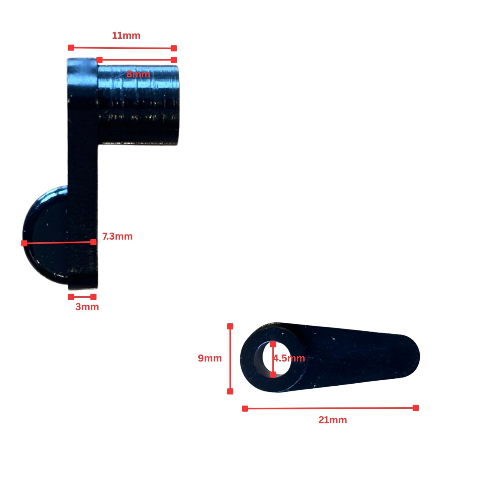 Dimensions: 21 mm length, 9 mm offset height, 4.5 mm hole, 3 mm foot width.