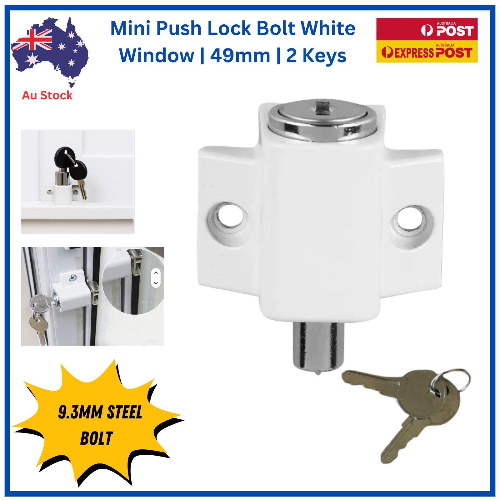 Simply push the lock in to secure your door or window, then use the key to release — ideal for patio, sliding and French doors, as well as timber and aluminium windows.