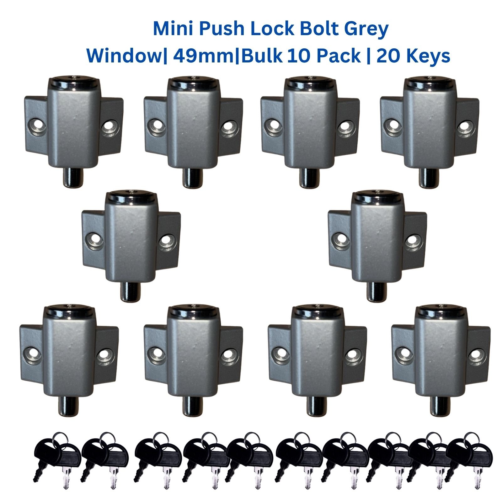 Mini Push Lock Door & Window Lock | Grey Silver | Bulk 10 Pack