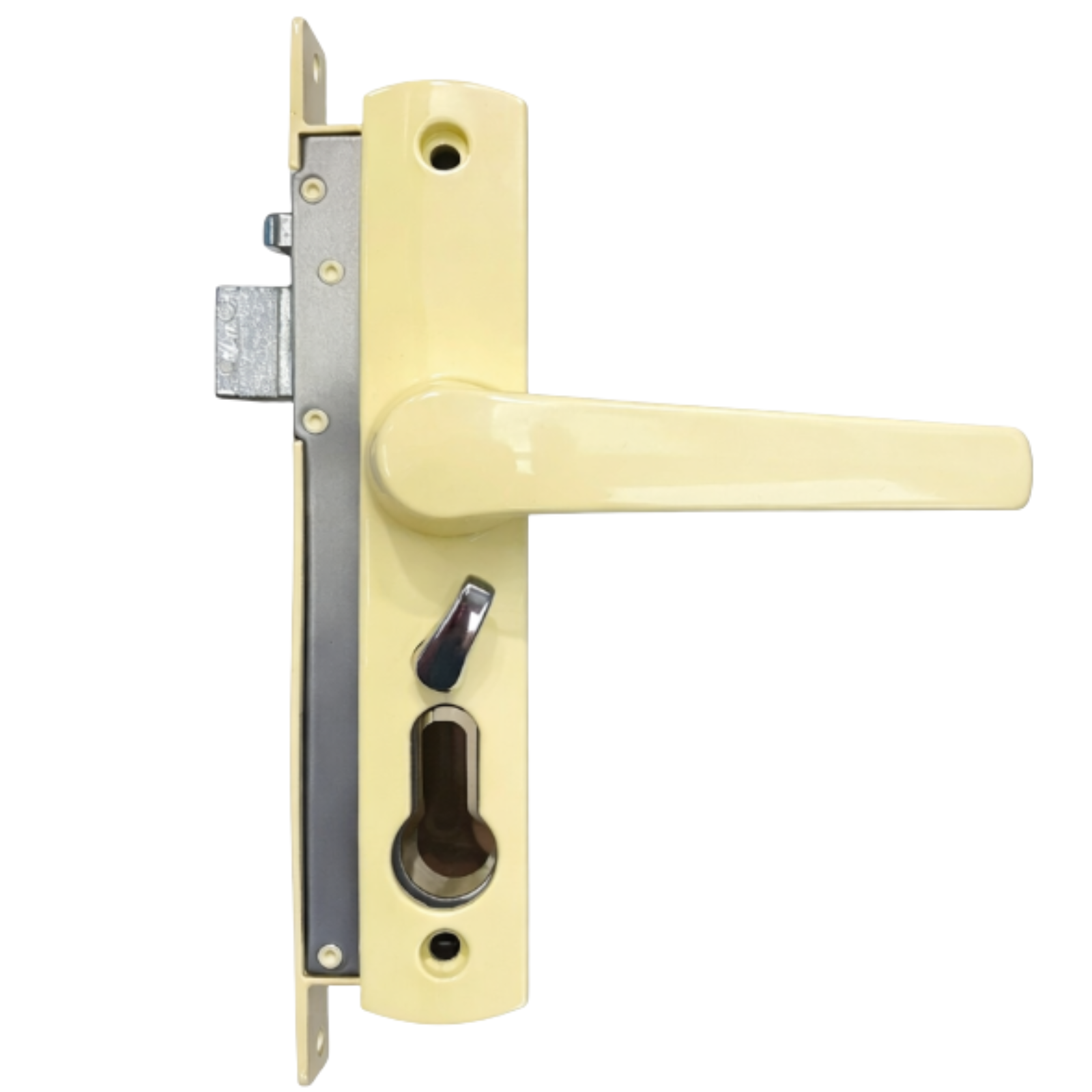 High-quality hinged security door lock in Primrose® finish with internal snib.