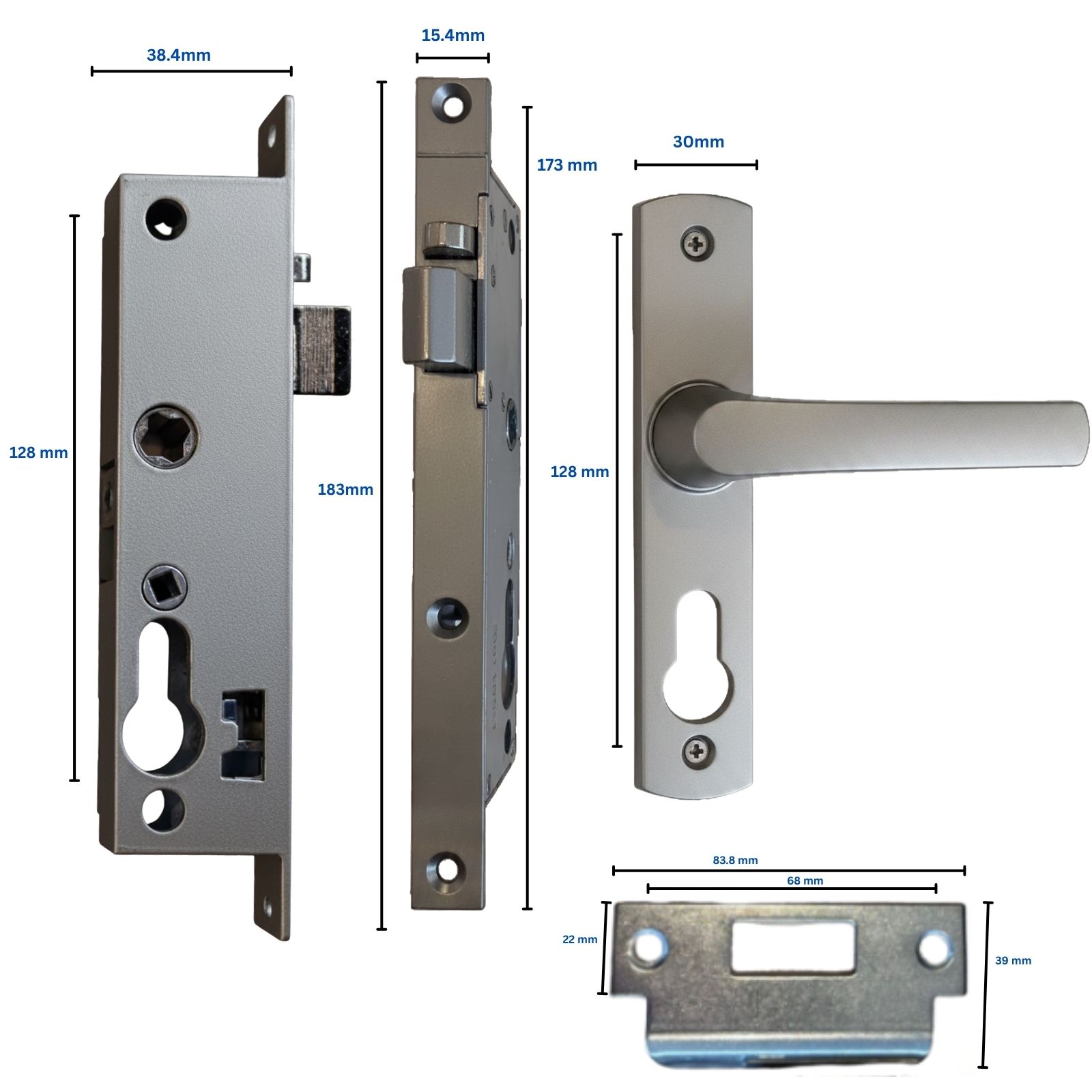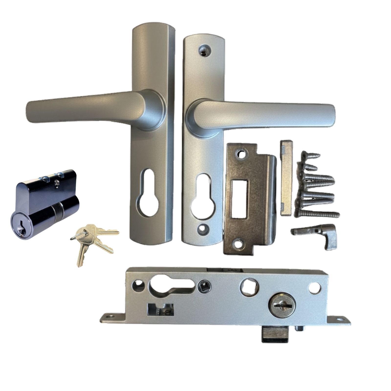Premium Silver hinged security door lock with internal snib and 4-pin cylinder (3 keys included).