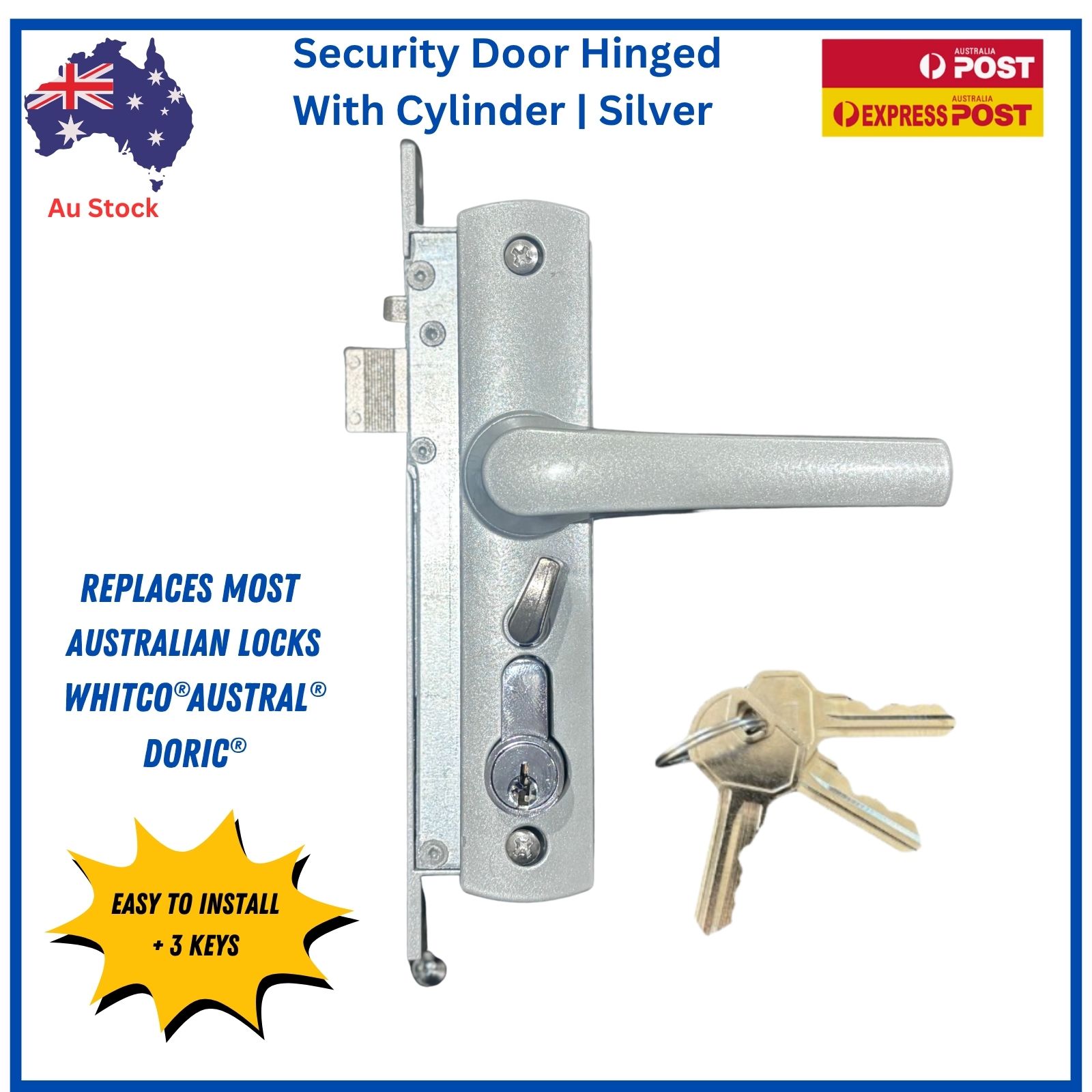 Security Screen Door Lock Hinged | Silver | Snib | Cylinder + 3 Keys