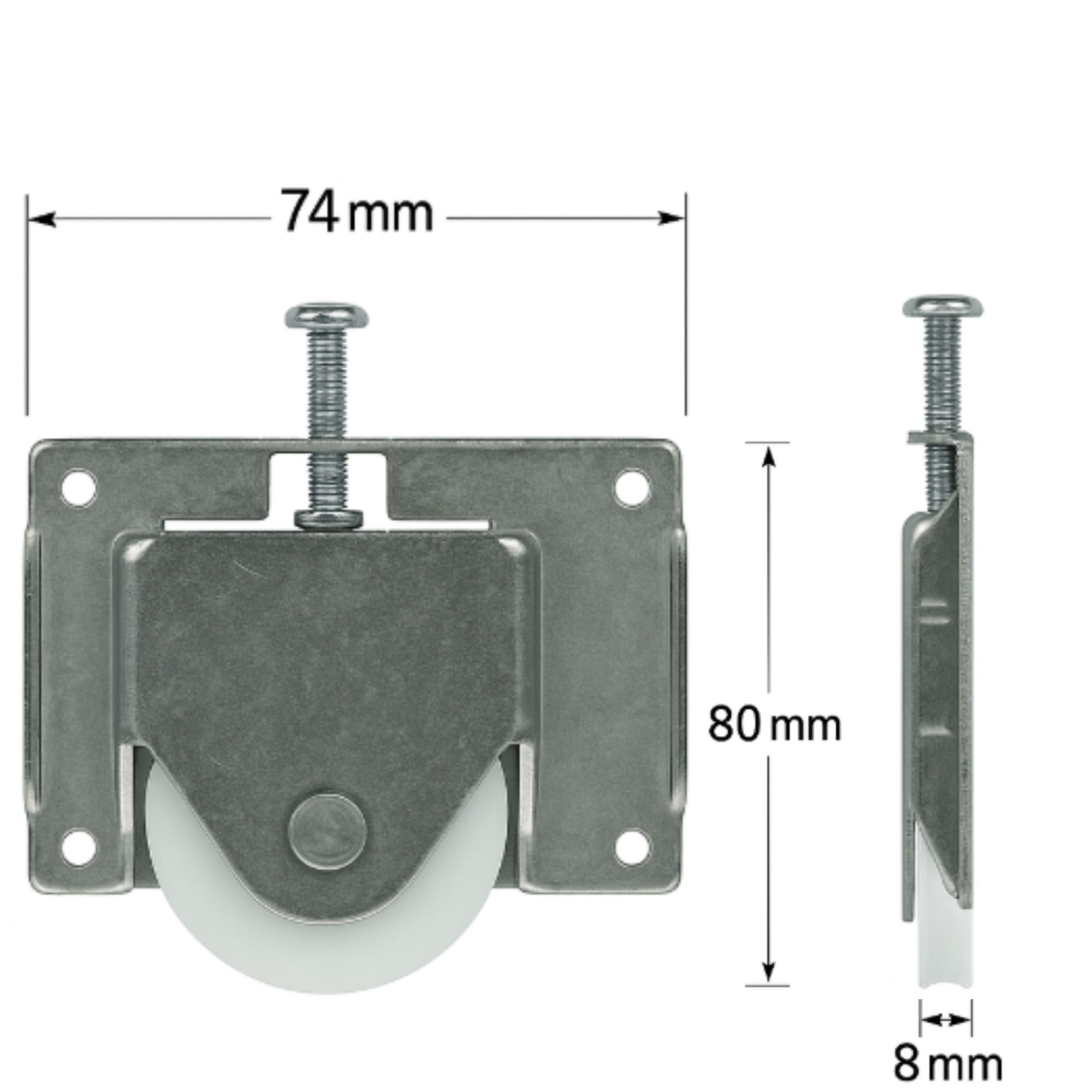 Adjustable Patio Door Carriage & Roller | 17mm Flared Wings | 25kg | Acetal Bearing Roller
