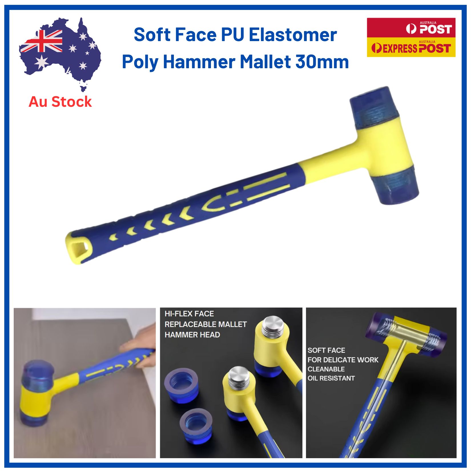- Soft Face PU Elastomer Mallet for precision and non-marring impact – softer than Nylon types
