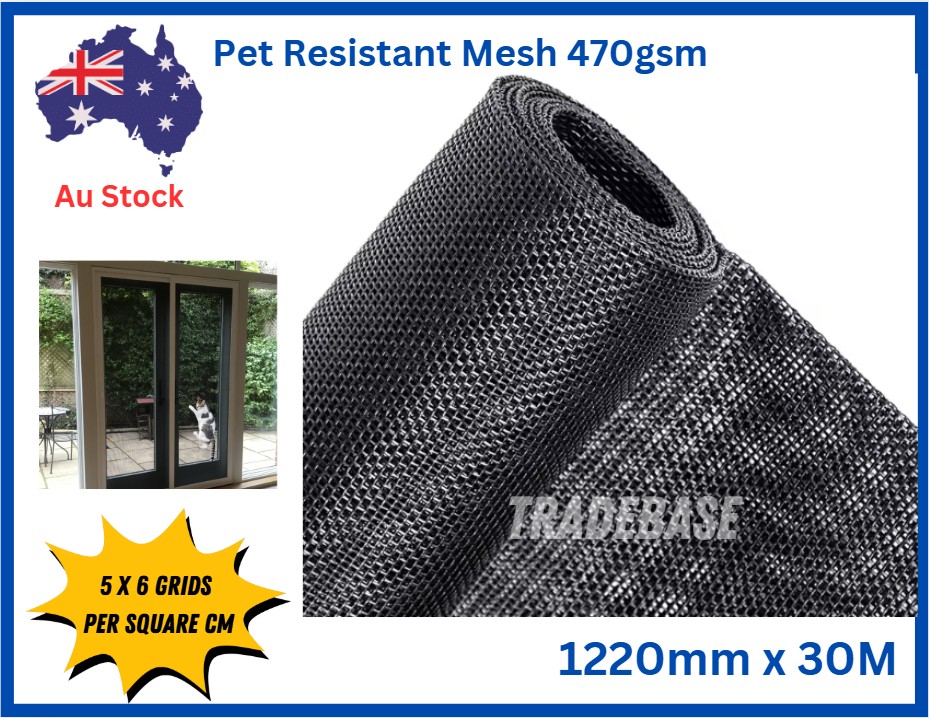 The TradeBase Pet Resistant Flyscreen Mesh 1220mm x 30m is designed for homes with cats and dogs that need more than standard screening. Unlike rigid wire mesh, this soft yet heavy-duty vinyl-coated polyester construction is safer and more comfortable for pets while still delivering exceptional strength and insect protection.