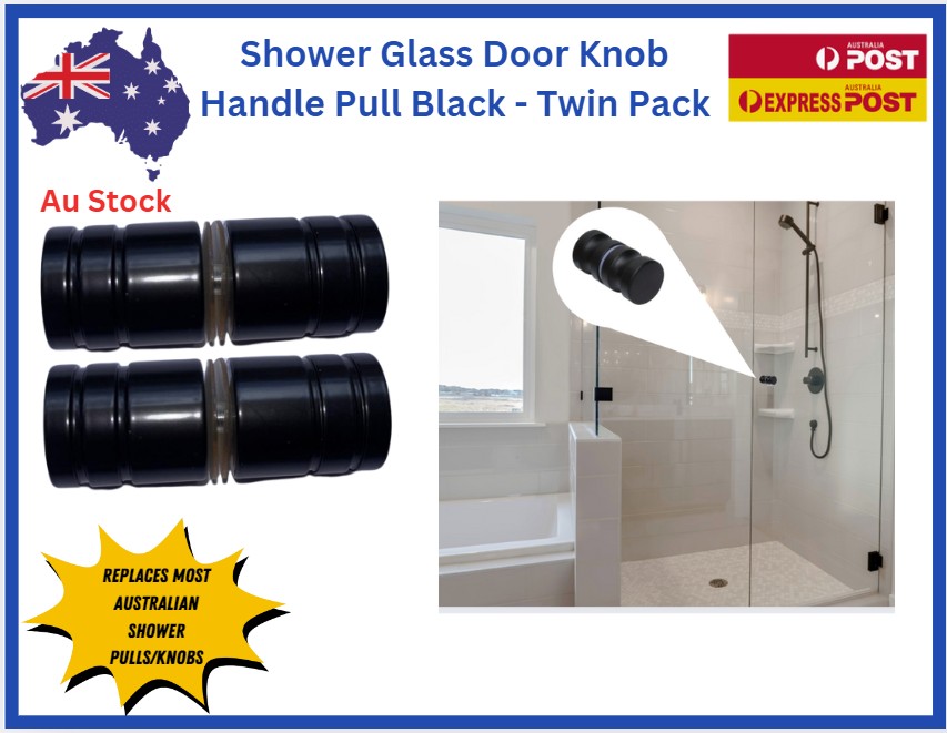 Glass Door Knob Pull Push Handle | Bathroom Shower |Aluminum Alloy | Black |Twin Pack