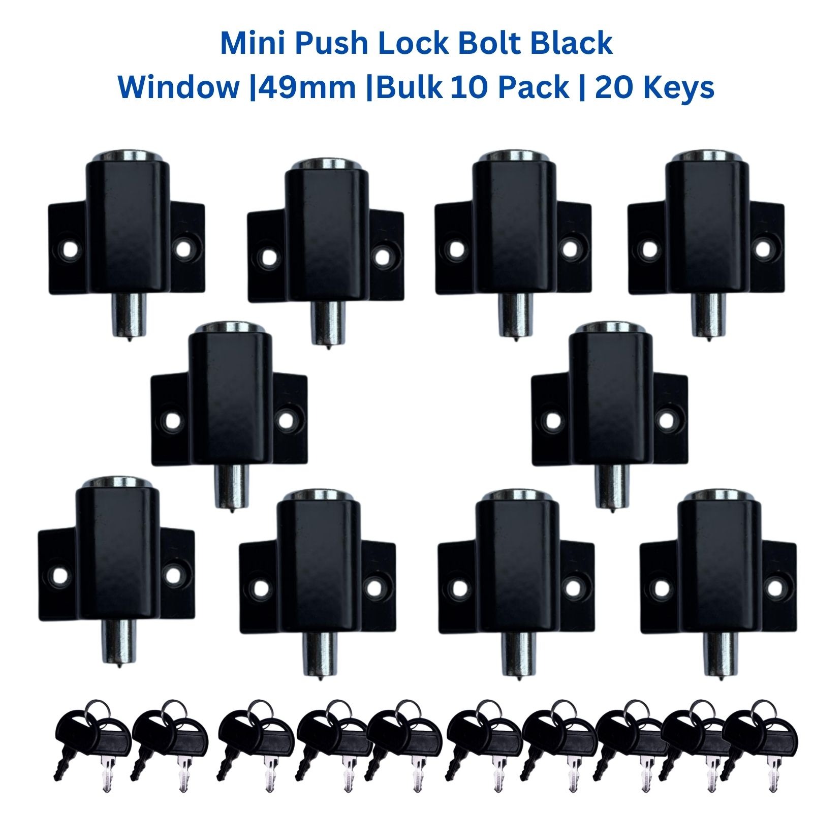 Aluminium Window Sash Lock – Black Key Lock | Keeper Snib | Keyed Alike | 10 pack