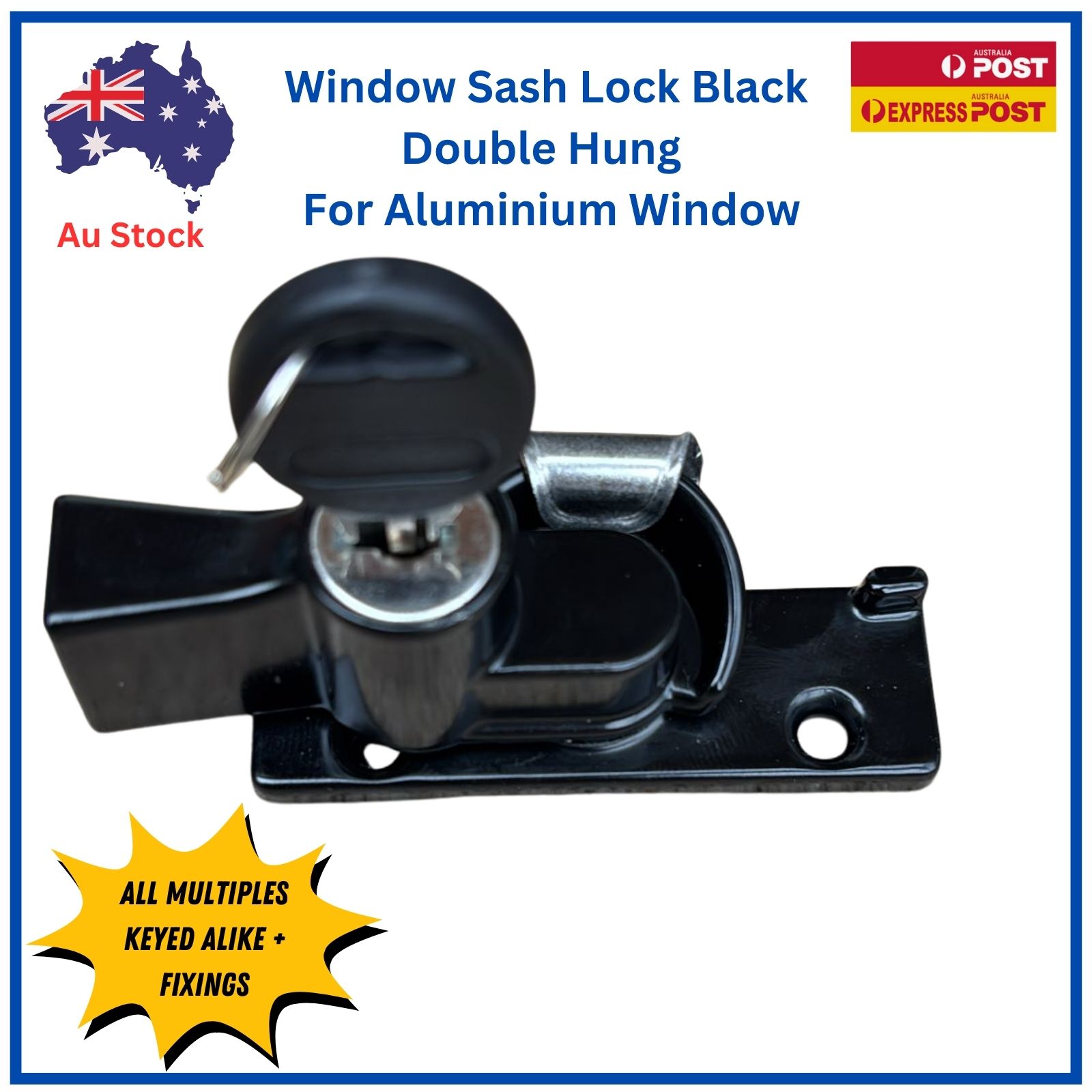 Timber Window Double Hung Sash Lock | Black Key Lock | Wide Base | Keyed Alike