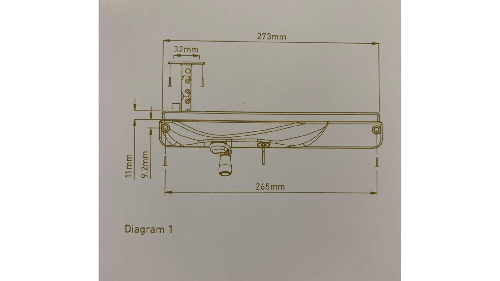 - Dimensions: 280mm (L) (265mm between hole fixing centres) x 46mm (D) x 47mm (H). Back 273mm Long.