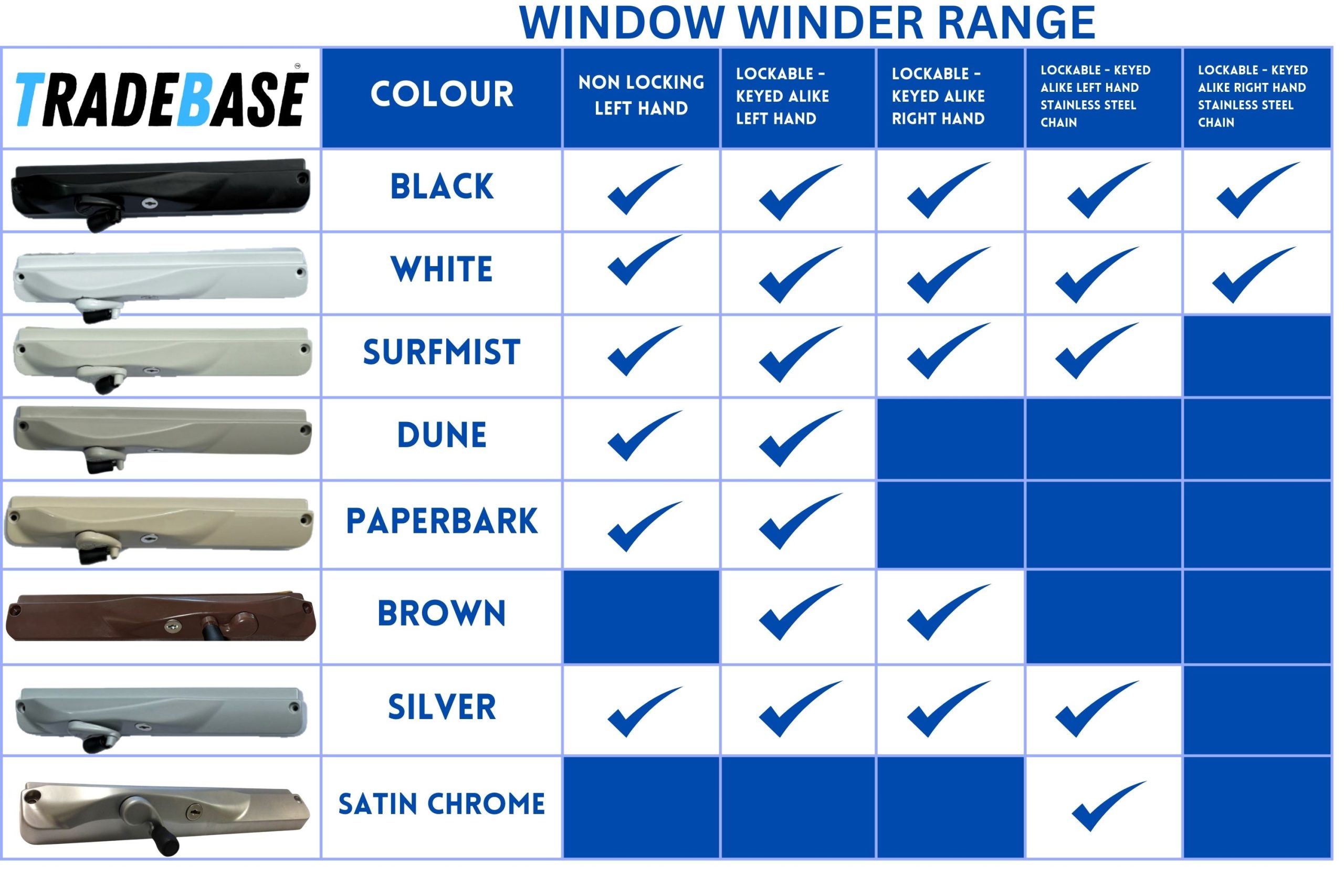 TRADEBASE Window Chain Winder Surfmist® | Lockable Keyed Alike